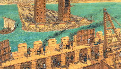 Alexander launched his siege in January 332 BCE. The first and most crucial military problem he faced was how the forces were to reach the island’s walls. Alexander’s approach was to build a causeway from the mainland and slowly approach the city. The work was not technically challenging but required large amounts of human resources. Alexander took care of this challenge by forcing the local inhabitants from the mainland to work side by side with the soldiers.