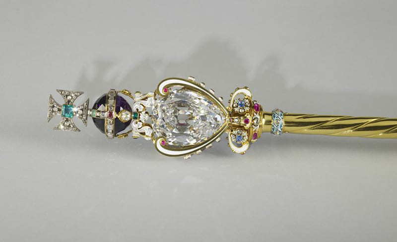 Now part of the Crown Jewels of England, the Great Star of Africa (also known as Cullinan I) is the largest clear cut diamond in the world, weighing in at 530.4 carats. It resides at the top of the Sovereign’s Sceptre with Cross.