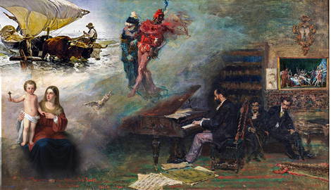 The painting Fantasy on Faust conveys the artist’s exceptional love for music, even a year before he was married to Cecilia de Madrazo, granddaughter of José de Madrazo, and a skilled pianist. It’s also an homage to Joan Baptista Pujol, the most brilliant composer and pianist of Fortuny’s day.