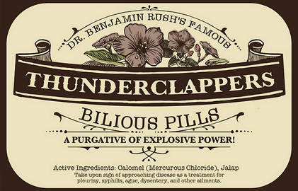 A potent blend of multiple laxatives, mercury, and chlorine, the pills were the invention of Benjamin Rush, a renowned American doctor with whom Lewis trained briefly prior to the expedition. The purgative effect of the compound was thought to allow the body to expel excess bile (or whatever may be irritating the system).