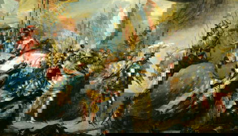 At the combat’s fiercest moment, the Captal de Buch gathered 200 reserve cavalry and led them in a wide swinging arc around to the French rear. He raised the flag of St. George and charged at Jean II’s flank. Seeing this, The Black Prince withdrew some of his dismounted knights from the line, mounted them, and had an impetuous knight called Sir James Audley lead them to crash into the other French flank. Upon seeing this, the remnants of Jean II’s army scattered and fled in every direction. A significant portion ran towards the swampy marshes called the Champ d’Alexandre, where English long-bowmen slew many of them. In the chaos, the King of France was surrounded by enemy soldiers who demanded his surrender.