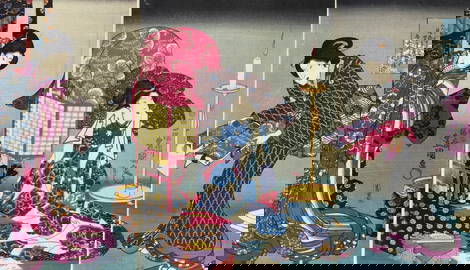 One of the great events of Yoshiwara was the parade of the highest-ranking courtesans wearing their new kimonos. Famous courtesans and kabuki actors like Geishas, which also included the Kabuki theaters of Edo. Courtesans were fashion icons, similar to today’s influencers and trendsetters, whose styles were admired and copied by ordinary women. The most elite and popular courtesans wore special kimonos with vibrant designs.