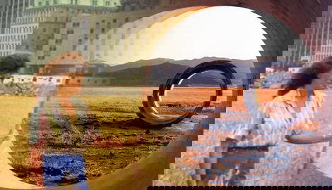Nancy Holt’s famous Sun Tunnels, 1973, were designed for the Great Basin Desert in Utah, in a desolate location between the Rocky Mountains and the Sierra Nevada range. Holt arranged four huge, concrete cylinders made from the same substance as urban underground drainage systems onto the ground to form an open x-shape. But instead of being crammed into a city, her pipes are surrounded by miles and miles of dry, barren wilderness that reach out across the flat horizon.