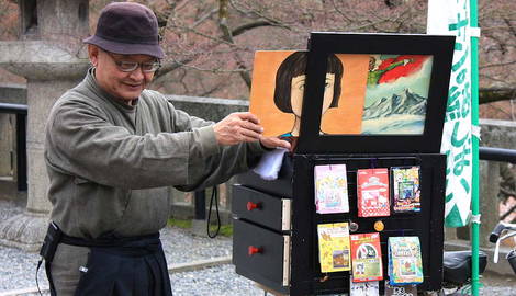 In 1933, there were approximately 2,000 performers on the streets of Tokyo. This number grew dramatically over the next few years, and by 1937, there were roughly 30,000 performers, who drew an estimated one million audience members daily (See Further Reading, Orbaugh, 2017). This speaks volumes to the enormous popularity of this newly founded art among young children, and this momentum didn’t slow down until the latter half of the 1900s.