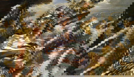 In a dream, the doomed Trojan prince Hector tells Aeneas that he must take a group of Trojans and their household gods, and establish a new home in a new land. So Aeneas escapes with his father Anchises, wife Creusa, and son Ascanius. Together they flee through the streets, but tragically Creusa is lost in the chaos and never seen again. Aeneas’ divine mother Venus keeps her son safe in his hour of need, and eventually they reach the safety of the mountains along with a group of other Trojans. The Romans’ mythical origin story has now begun.