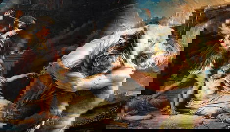 With war coming, much to the dismay of Aeneas, the Trojans left the city of the Latins and camped by the banks of the Tiber. In a dream, Aeneas saw the god of the river, who assured him that Italy was to be the Trojans’ home. He told the epic hero that their great kingdom would begin where they saw a white sow with thirty piglets. Tiber also instructed Aeneas to seek out King Evander of the Tuscans, who would be their allies in the war to come. Sailing up the river Tiber, Aeneas caught sight of the white sow as prophesied. Further up the river, they found the Tuscans, performing rites in celebration of Hercules. Challenged by Pallas, the king’s son, they came to shore and were welcomed by King Evander and his people.