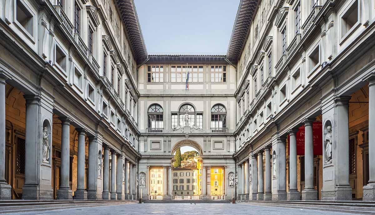This breath-taking masterpiece by Sandro Botticelli is considered a star attraction in the Uffizi. Rich in allegorical meaning, it tells the story of Venus being born from the sea, taken from Ovid’s Metamorphoses. Botticelli paints Venus naked, perched on a seashell, while celestial forces blow her towards the seashore. On the right, a handmaid lifts a shawl to cover the great beauty’s modesty as she enters the world for the first time. His portrayal of the ancient story is adorned with intricate details, including flickering fabric and glistening blue seawater, transporting us to a magical, otherworldly place.
