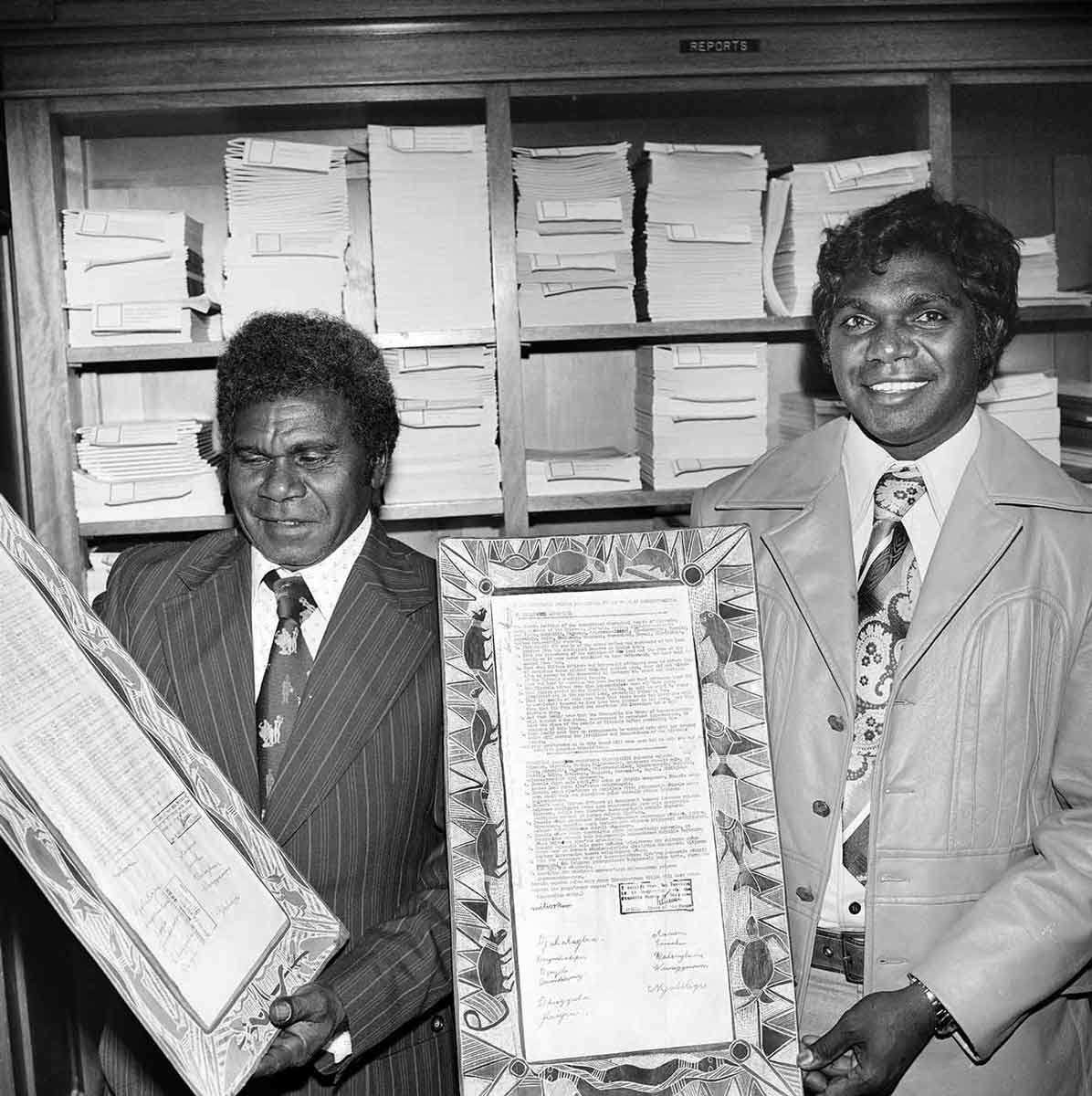 The fact that the petition was first written in Yolngu Matha, and then later translated into English, makes it unique. It was also the first Aboriginal petition and the first document written in an Aboriginal language to be officially recognized by the Commonwealth government. Eventually, the Select Committee on Grievances of Yirrkala Aborigines, Arnhem Land Reserve issued a report recommending that Yolngu sacred sites be protected, and compensation paid to them. 25 years later, the 1988 Barunga Statement, presented to then-President Bob Hawke, was placed on a sheet of composite wood too, and its sides were painted by Yolngu, Arrernte, and Warlpiri artists from central Australia.