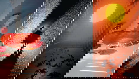 With all the magical mystery of a childhood fairy-tale, Belgian artist Carsten Holler’s Mushroom Room, 2000 is a treat for the senses. Holler deliberately selected the red-and-white agaric fungus because of its psychoactive qualities, grossly exaggerating their size, colors, and textures to amplify their dramatic impact. Suspending them from the ceiling upside down forces visitors to squeeze and duck their way through them, turning this installation art into an interactive experience that engages the entire body and mind. Holler likens the transformative power of these mushrooms to the act of viewing and interacting with a work of art, arguing both can induce the same mind-altering experience of imaginative awakening that is at the core of creative thinking.