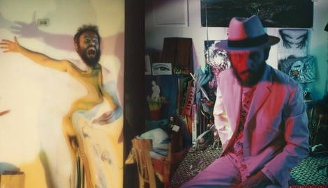 Samaras used this apartment as a photography studio, setting up elaborate scenes with colorful props and stage lighting, and producing countless images using the Polaroid camera. His most famous Polaroid work is the Photo Transformation series. These images were made using the Polaroid SX-70 camera. Once the photos were printed, Samaras would manipulate the ink before it dried, using an array of implements or sometimes just his fingers to blur and smudge the surface. The results are other-worldly self-portraits that at times make Samras seem like a non-human at times.