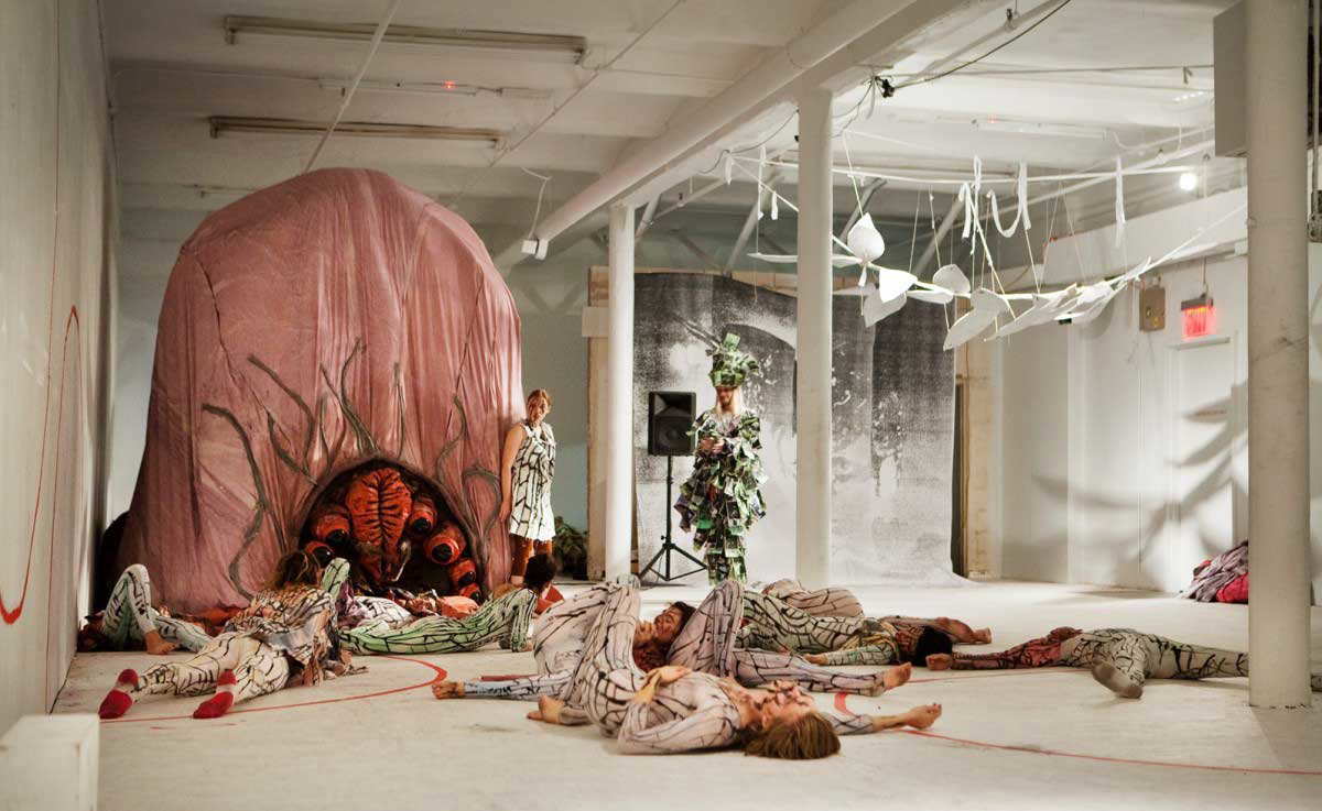 Performance art is one of the more inclusive art forms, inviting multi-disciplinary ways of making art, and encouraging artists from different disciplines to collaborate. Acts of cross-pollination and sharing of ideas have opened up a whole new wealth of creative possibilities, as seen in Marvin Gaye Chetwynd’s lavish and all-encompassing events that merge the spectacle of theatre and costume with sculpture and dance.