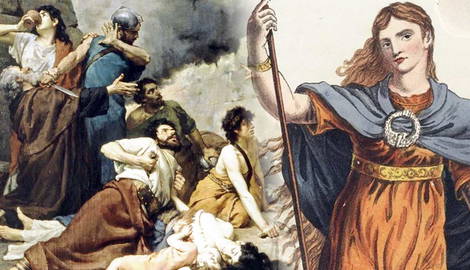 Another significant conflict between Romans and Celts was marked by the rebellion mounted by Boudica, queen of the Iceni tribe in Britain. The conflict began after Boudica’s husband, King Prasutagus, who had surrendered to Rome after Emperor Claudius launched an invasion of Britain in 43 CE, died. Prasutagus had left his kingdom to both his daughters and the Roman emperor in his will, but the imperial procurator Decanius Catus seized his entire estate. Boudica and her daughters were then lashed and violated, and the upper class and nobility of the Iceni were disenfranchised.