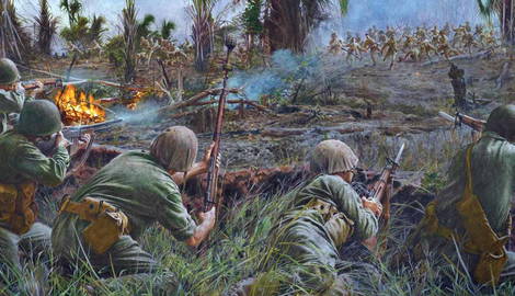 Famous Guadalcanal fights include the Battles of the Tenaru, Henderson Field, and Bloody Ridge. The Marines and U.S. Army brutally fought off tough Japanese attacks. The Japanese could not replace or sustain their troops. The jungle was everyone’s enemy with nasty diseases like mosquito-borne malaria, dysentery, and jungle rot.