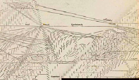 Two and three-point perspectives came later, most notably through the writer Jean Pelerin, known by the name ‘Viator.’ In his De Artificiali Perspectiva, 1505, he wrote about using a further two ‘tier points’ alongside the central vanishing point, which enabled artists to depict buildings seen from a series of unusual or oblique angles.