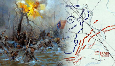 The Battle of Stones River was a brutal slugfest. After eyeing each other in central Tennessee, the armies of Union general William Rosecrans and Confederate general Braxton Bragg planned to attack each other, hoping to win the region for their respective countries. Despite the initial success of a Confederate attack on December 31, 1862, the Union eventually held firm as the Confederate follow-up was uncoordinated. After prematurely declaring victory that evening, the Confederates failed to notice the maneuvering of Union reinforcements.