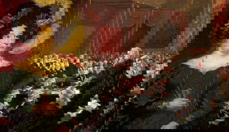 Queen Caroline shouted, “The Queen! Open!” and the pages opened the door. “I am the Queen of England!” she remonstrated, to which an official roared at the pages, “Do your duty… shut the door!”