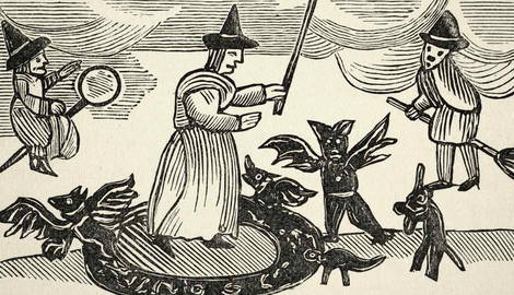 In the Western world, say the word witch and a certain image comes to mind: an old, wart-covered woman bent over a bubbling cauldron, wearing a black robe and a pointy hat, a broom for flying propped in the corner, and a black cat familiar looking on. Where did these images come from?